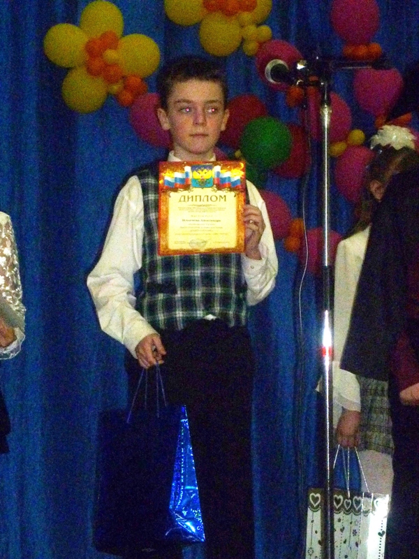 Наш участник Ильичев Александр стал лауреатом конкурса. Молодец! А еще наша школа запомнилась выступлениями хора четвероклассников и танцоров из 2-б класса. Таланты!