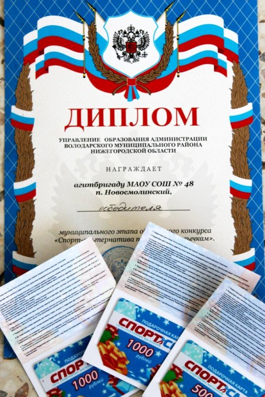 16 декабря 2013 года в актовом зале МАОУ СОШ № 48 п. Новосмолинский встретились лучшие агитбригады школ района. Главной темой акции стали слова «Спорт-альтернатива пагубным привычкам!» Старшеклассники рассказывали о здоровом образе жизни, использовали много музыки, декламации и театральных действий. Все выступления были оригинальными и интересными, а соперники достойными. По мнению жюри, агитационная бригада МАОУ СОШ № 48 стала лучшей в районе! А победили в конечном итоге все! Ведь здоровье, красота, спорт- будущее победителей, где никогда не будет места пагубным привычкам и зависимостям!