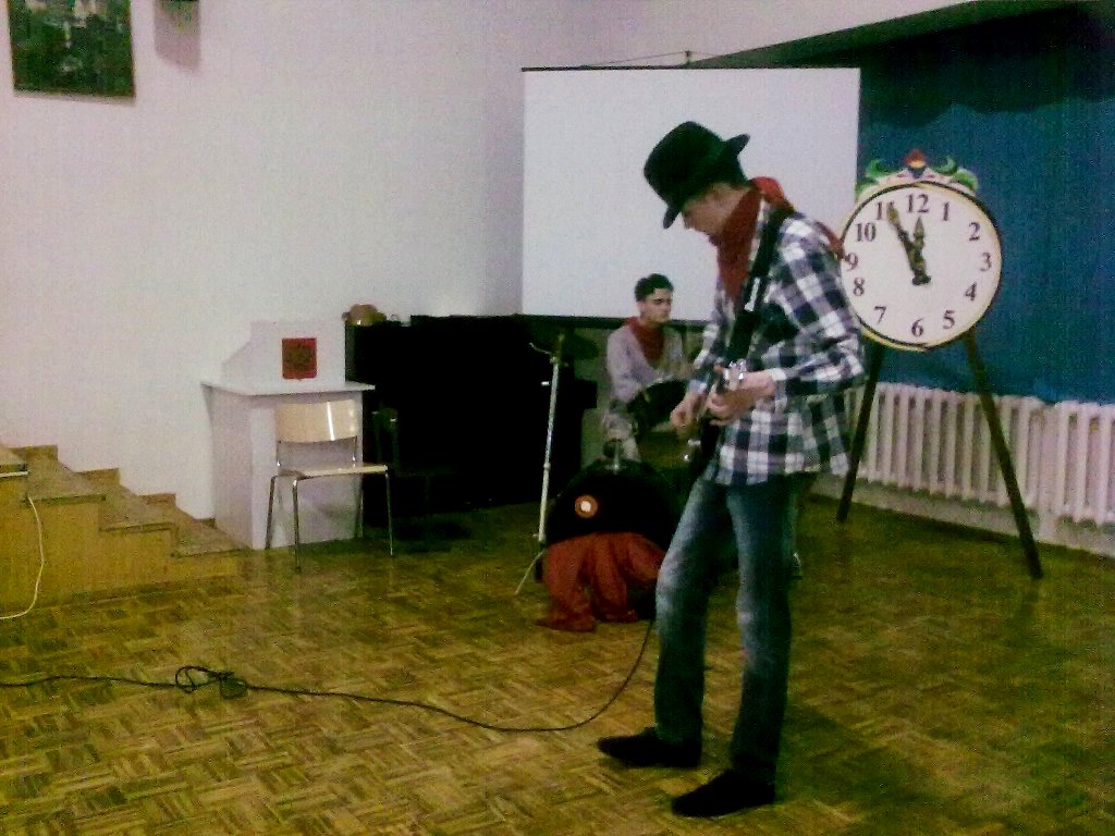Мы умеем учиться и работать, а также отлично отдыхать! 27 декабря 2013 года стал кульминацией новогодних представлений. В нашем актовом зале веселились от души малыши начальной школы, а вечер, подготовленный силами старшеклассников, прошел в стиле кантри. Ведь следующий год по китайскому гороскопу - Год лошади. 11 класс – наши выпускники- стали командами ковбоев и пригласили в свое праздничное шоу ярких героев: девятиклассников- стиляг и цыган, десятиклассников с экспериментальным театром. Звучала зажигательная музыка, было много танцев, юмора и смеха.