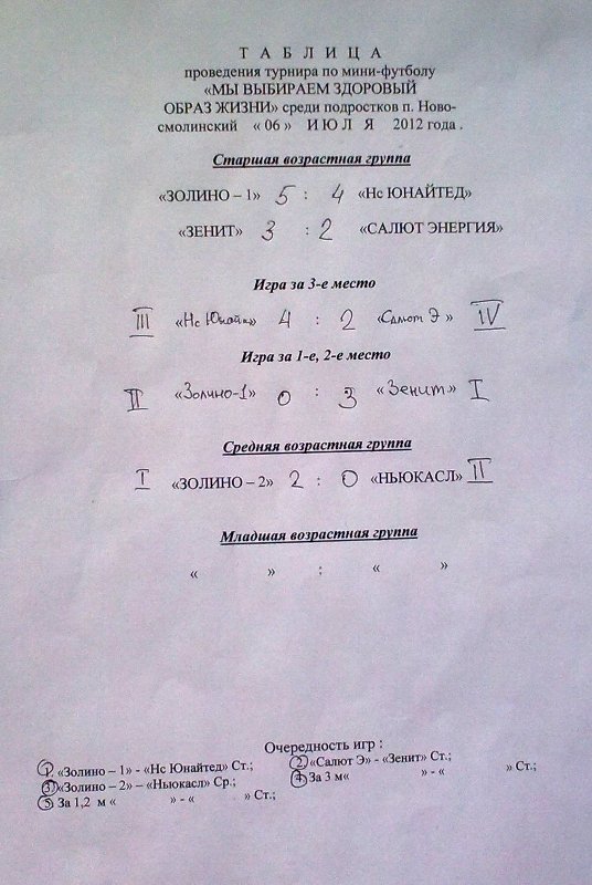 Жаркое июльское солнце, накал страстей, радость победы- всё перемешалось и оставило яркие впечатления у игроков и болельщиков команд. В старшей возрастной группе подтвердил свой чемпионский титул «Зенит» из поселка Новосмолинский, в средней возрастной группе победа досталась команде «Золино-2».
