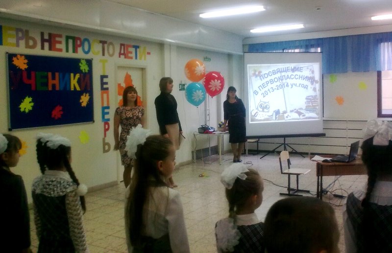 Кто-то скажет: «Учениками становятся, как только переступают порог школы 1 сентября». Но этому мнению можно возразить: разве можно сразу за один день привыкнуть к школьным правилам? Ведь как сложно сидеть на одном месте, правильно держать ручку и карандаш, выполнять задания! Почти два месяца наши малыши учились быть настоящими учениками, а 28 октября 2013 года позвали своих родителей и друзей на праздник Посвящения в первоклассники.