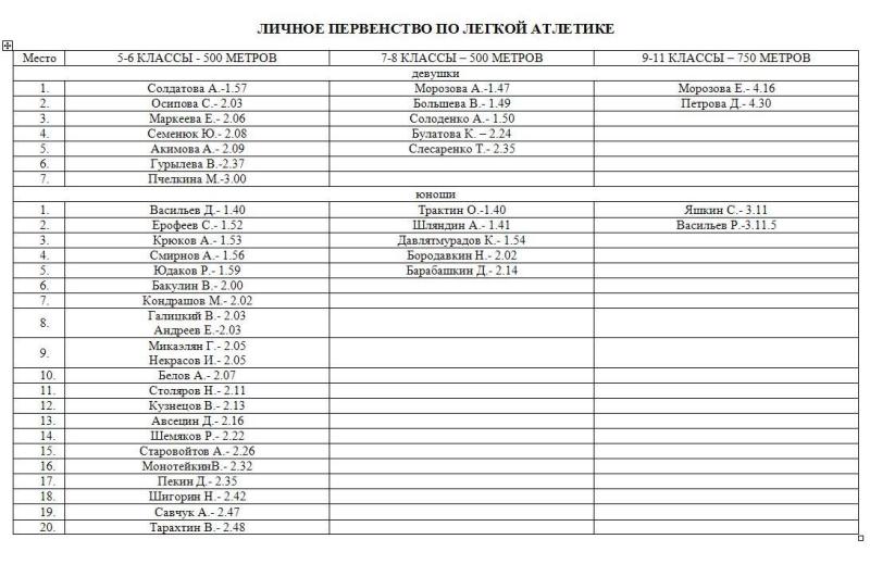 Учащиеся 5-11 классов говорили о чемпионах нашей страны в зимних олимпиадах, а потом на школьном стадионе показывали свои спортивные достижения в эстафетах, волейболе и пионерболе, а также в легкоатлетических забегах. Лучшими в своих подгруппах стали 6-а, 8-а и 11 класс. В личных зачетах победу одержали Солдатова Анастасия, Морозова Александра, Морозова Екатерина, Васильев Данил, Трактин Олег и Яшкин Сергей.