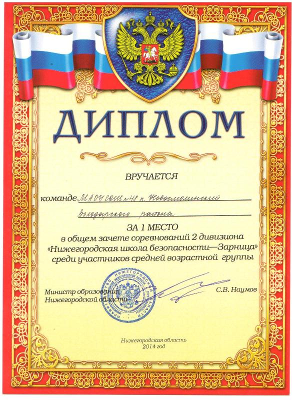 1 место - общий зачет соревнований 2 дивизиона «Нижегородская школа безопасности- Зарница» среди участников средней возрастной группы