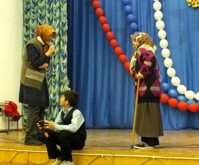 Ведущие – Олег С. Емельянов и Даниил Игонин- выступили в роли кулинаров, которые готовили милым дамам отличное настроение. Изюминкой стали песни в исполнении сводных хоров первых, вторых и третьих классов. Мальчики 5-а класса подготовили юмористическое представление. Зал рукоплескал девушкам группы «Класс!», которые специально к празднику выучили новую песню - на французском языке.