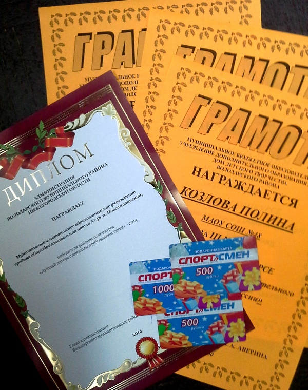 31 октября 2014 года на Координационном совете по организации отдыха, оздоровления и занятости детей и молодежи Володарского муниципального района были подведены итоги лета. В актовом зале МАОУ СОШ № 48 собрались представители Управления образования администрации Володарского муниципального района, отдела культуры и молодежной политики, Управления соцзащиты населения, Центра занятости населения, Володарской центральной районной больницы, отдела внутренних дел, руководители образовательных организаций. Лучшие работники, педагоги, а также школьные коллективы были награждены почетными грамотами и благодарственными письмами. Пришкольный лагерь «Солнышко» МАОУ СОШ № 48 стал победителем в номинации «Лучший лагерь с дневным пребыванием детей 2014 года»! Поздравляем и желаем процветания!