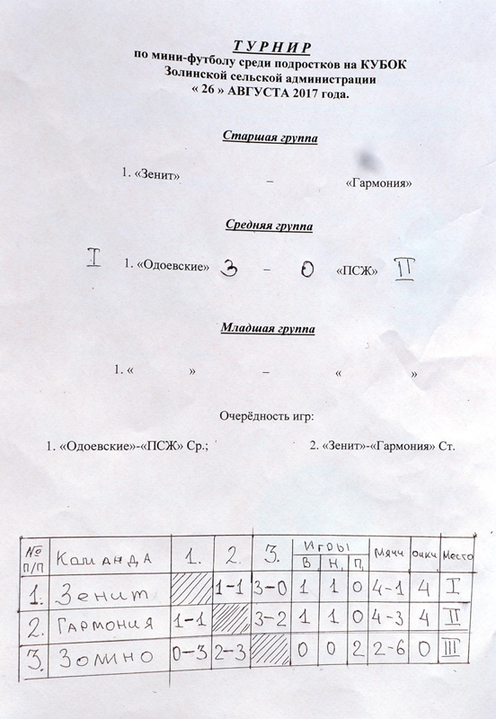 26 августа 2017 года в п. Новосмолинский состоялись соревнования по мини-футболу среди дворовых команд на Кубок Золинского сельсовета. Состязания традиционно были проведены в День поселка Новосмолинский и были посвящены памяти Почетного гражданина Золинского сельсовета Г.И. Яцына . За право называться лучшими футболистами сразились пять команд из Новосмолинского, Мулино, Золино . Судьей соревнований выступил подполковник внутренней службы отдела МВД России по Володарскому району Владимир Николаевич Попик. Глава местного самоуправления Золинского сельсовета Виктор Васильевич Уланский, глава администрации Золинского сельсовета Сергей Николаевич Калугин поздравили спортсменов с отличным выступлением, вручили ребятам медали, грамоты и кубки, сладкие призы. Победителям также достались мячи! Поздравляем спортсменов и желаем новых успехов! Ждем нового футбольного лета!