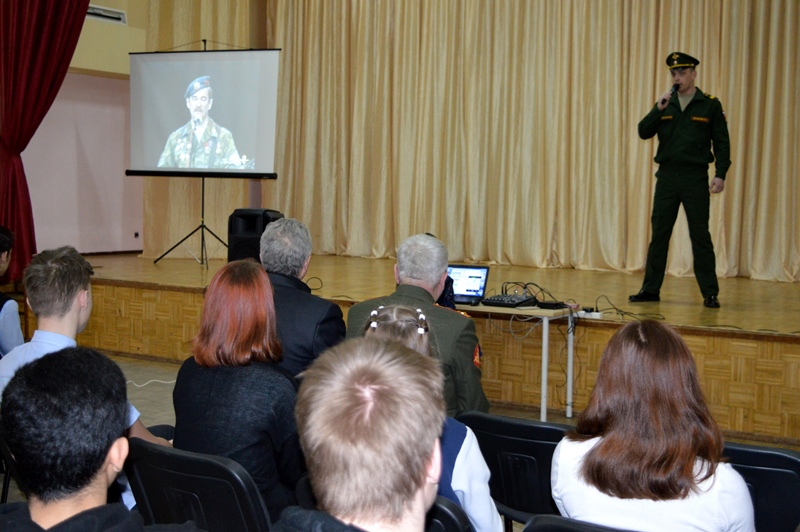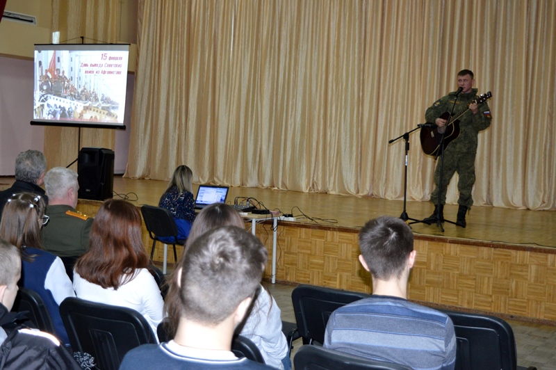 Перед учениками выступали живые свидетели событий войны в Афганистане. Ветераны боевых действий Виктор Васильевич Уланский и Валерий Вячеславович Пазилов рассказывали о трудностях своей службы в жаркой точке, делились впечатлениями и воспоминаниями. Душевную атмосферу создавали песни о войне и кадры хроники. Встреча получилась насыщенной и интересной.