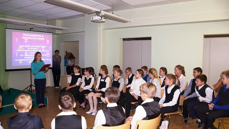 Пятиклассники прошли обряд посвящения накануне Дня рождения школы. Они уже выучили имена всех учителей, номера кабинетов и их местоположение, написали первые контрольные, вычислили ближайший маршрут от любого кабинета до столовой, И вот – торжественный и столь долгожданный час! Ребята 5-а и 5-б класса собрались в школьной библиотеке, чтобы ещё раз продемонстрировать свою смекалку и показать свою находчивость и умение работать в команде. Они отгадывали ребусы, пели песни, собрали слово «Пятиклассник», которое послужило им пропуском в ряды школьников средней школы.