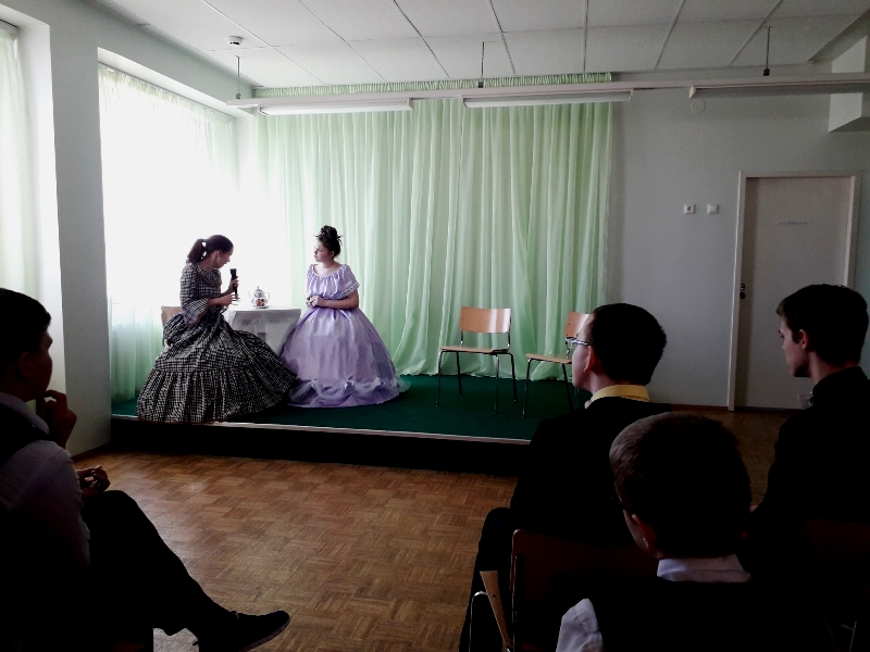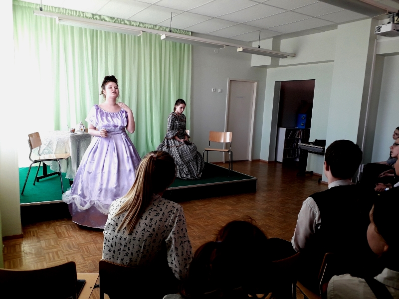 5 апреля 2018 года в библиотеке МАОУ СШ№8 состоялось выступление театральной группы «Полианна». Традиционное школьное представление артистов предваряет их выступление на нижегородском детском театральном фестивале имени Евгения Евстигнеева. По мнению руководителя труппы, преподавателя театрального отделения Новосмолинской детской школы искусств Марины Евгеньевны Кирилюк, школьные подмостки стали для них счастливыми, приносят им признание и на областной сцене. В этот раз зрителям был представлен отрывок из произведения Николая Васильевича Гоголя «Мертвые души». Яркие артистки Алина Степанова и Елизавета Антипова перенесли всех в атмосферу сплетен и интриг. И зрители были в восторге! Хотелось продолжения удивительного чуда под названием «театр»…