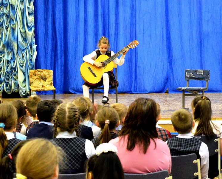 Открывала весенний концерт Анастасия Концелидзе и «Скерцино» (преподаватель Шавридина Наталья Леонидовна). Прозвучали «Под горкой» в исполнении Екатерины Шабаршовой (преподаватель Левкоева Елена Юрьевна), Алиса Девришалиева представила произведение «Казачок» (преподаватель Шавридина Наталья Леонидовна). Ребятам очень понравилось энергичное выступление Егора Павлушкова и его «Кавалерийская», «По малину в сад пойдем» (преподаватель Ульянычев Сергей Валерьевич). Искусство декламации представляли Егор Бушуев и Дарья Крестелева (преподаватель Кирилюк Марина Евгеньевна).