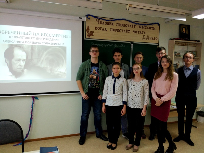 11 декабря 2018 года в МАОУ СШ№8 состоялись уроки, посвященные 100-летию со дня рождения А.И. Солженицына.