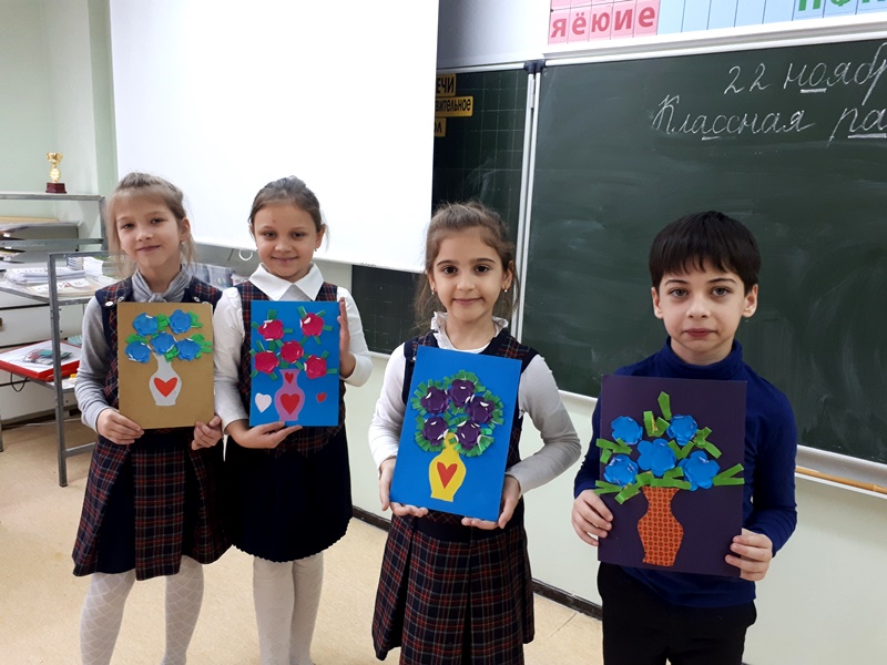 29.11.18 Желтый день – День Творчества. Все ребята в классах на уроках изобразительного искусства и технологии сделали творческие работы, посвященные Дню матери, а также участвовали в концерте.