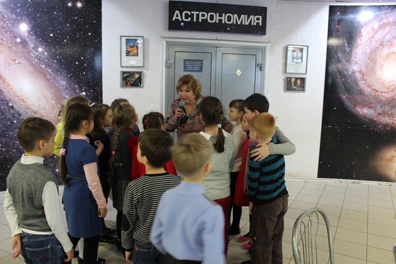 В малом звёздном зале «Астрономия» юные путешественники узнали, «из какого ковша не пьют, не едят и почему?», познакомились хозяйкой звёздной страны – Большой Медведицей, учились ориентироваться по Полярной звезде, а также загадали желание под звёздами: «Учиться только на «5!». И, наконец, под куполом Большого звёздного зала юные путешественники попали в «Звёздную сказку», из которой узнали, как на небе оказались две медведицы, совершили путешествие в лунную обсерваторию будущего. Первоклассники и классный руководитель Лидия Анатольевна Барскова приглашают всех посетить планетарий и прикоснуться к космическим тайнам!