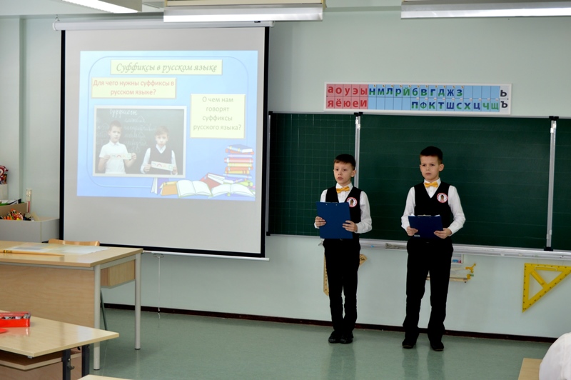 Буткарев Вадим, Паунежев Олег с работой «Говорящие суффиксы в русском и английском языках», руководитель Т.Г. Гафарова – призеры
