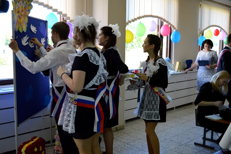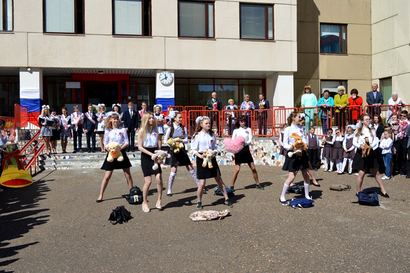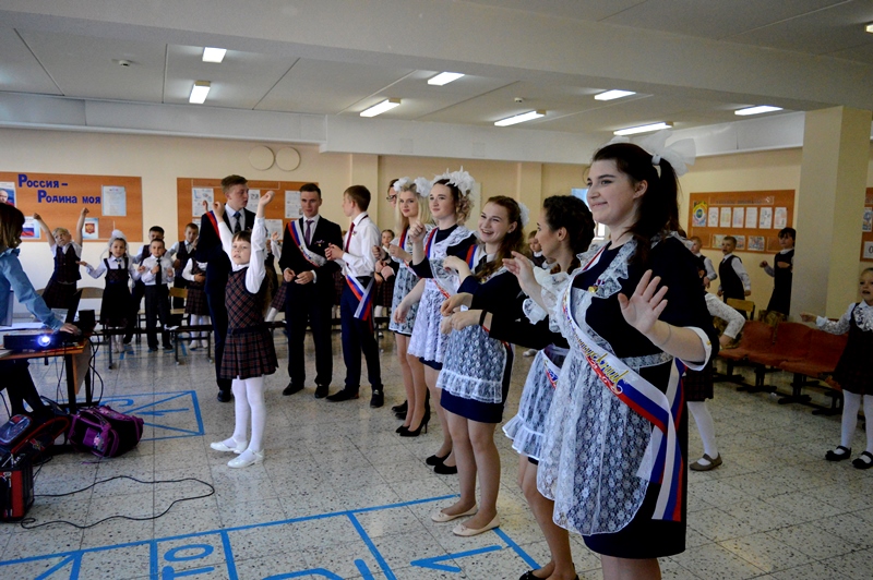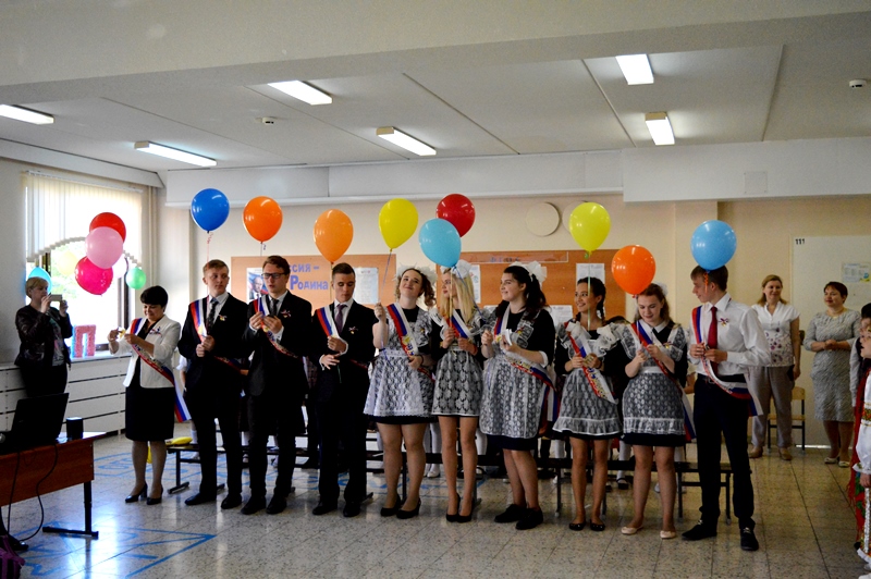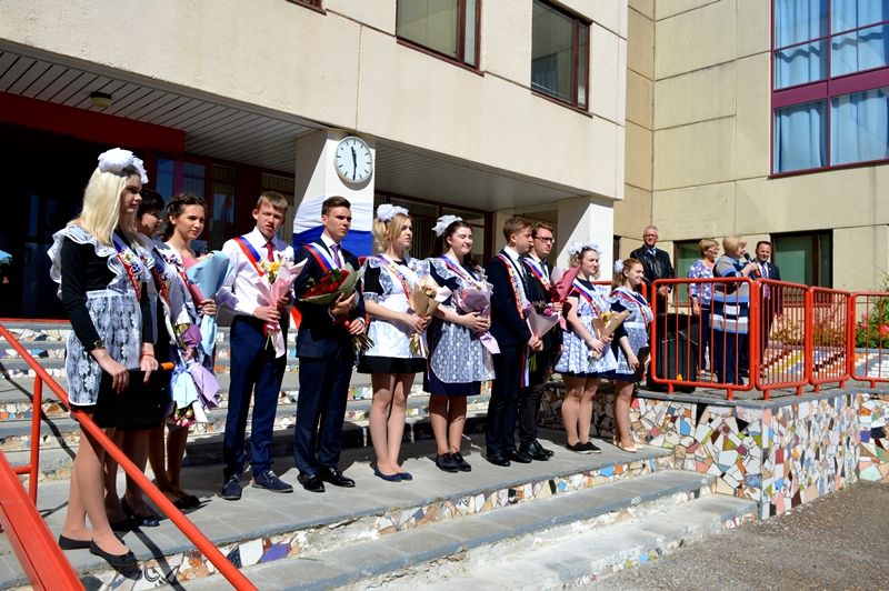 Учащиеся 11 класса начали свой день с заключительного урока с малышами первых классов. Учителя Барскова Лидия Анатольевна, Лаптева Христина Александровна, Левкуша Анастасия Евгеньевна отправили всех учеников по веселым и увлекательным урокам. Первоклашки с удовольствием развлекали выпускников, а одиннадцатиклассники вспоминали начальную школу. А на школьном дворе на торжественную линейку уже собрались все учителя, ученики и родители. Ведущие праздника Валерия Бебия и Надежда Гапонова объявили выход выпускников. Под красивую музыку и аплодисменты появились виновники торжества: 9-а класс и классный руководитель Коптелова Татьяна Анатольевна, 9-б класс и классный руководитель Соболева Елена Сергеевна, 11 класс и классный руководитель Гафарова Татьяна Генадиевна.