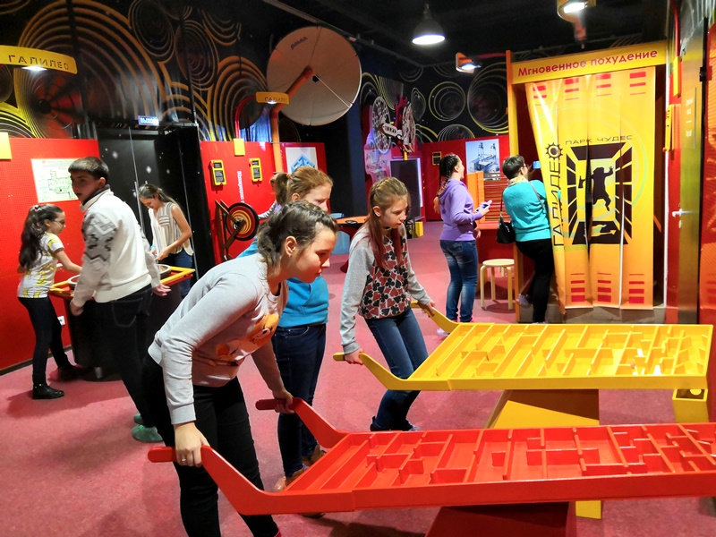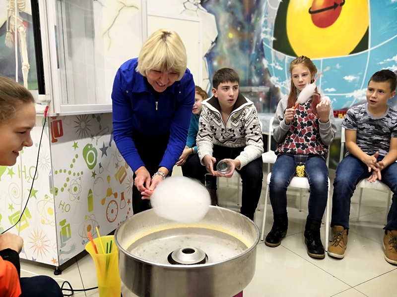 Затем исторический квест сменился научным: шестиклассники с удовольствием делали познавательные открытия в «Парке чудес «Галилео», блуждали в зеркальном лабиринте и даже научились делать сахарную вату!