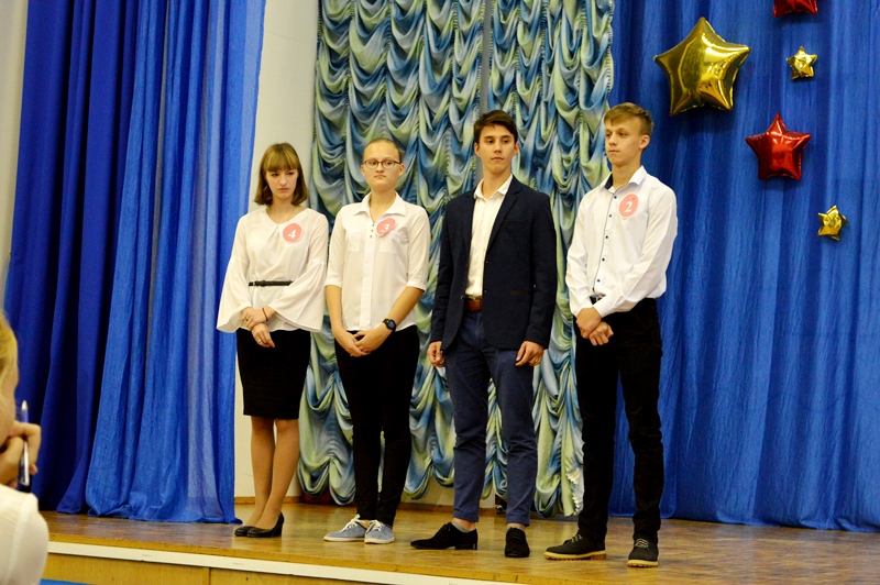 По окончании Дня самоуправления главное действие праздника переместилось в актовый зал, где состоялся финал школьного этапа муниципального конкурса «Ученик года-2018». Мероприятие открыла яркая песня о школе в исполнении сводного хора МАОУ СШ№8 (руководитель Виктория Викторовна Данилко). Ведущие конкурса Даниил Сиркачик и Елизавета Антипова пригласили на сцену участников. Эмиль Джессур (11 класс), Валерий Кузнецов (10 класс), Дарья Скрябина (9-а класс), Ксения Старова (9-б класс) получили немало теплых слов поддержки от директора школы Ирины Владиславовны Васильевой, главы местного самоуправления Золинского сельсовета Виктора Васильевича Уланского.