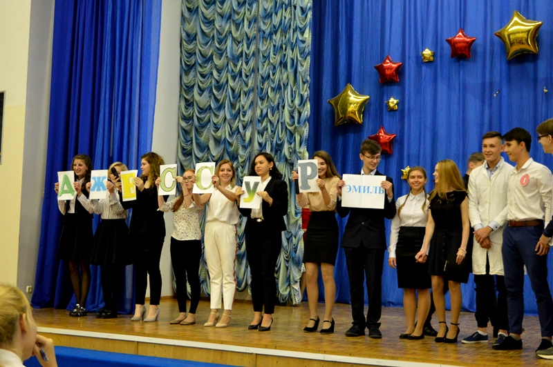 Каждый участник оригинально представил свою визитную карточку. Эмиль показал себя в роли универсального ученика, Валерия ярко поддержали одноклассники-стиляги, Дарья запомнилась устремленностью в будущую профессию, Ксения интеллигентно показала свои разносторонние интересы. Затем ребята прошли интеллектуальное испытание в виде теста на общие знания и игры, посвященной театру (следующий 2019 год объявлен Годом театра).