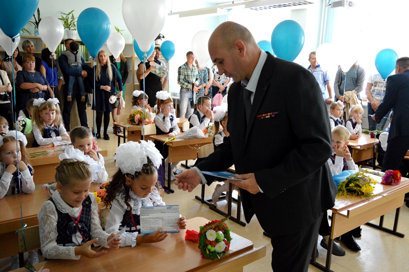 1 сентября 2018 года в МАОУ СШ№8 состоялась торжественная линейка, посвященная Дню знаний. Первыми собравшихся приветствовали ученики 11 класса и классный руководительТатьяна Юрьевна Игнатьева. Ведущие праздника Юлия Бычковская и Никита Халиман пригласили на мероприятие главных героев дня- первоклассников. Малышей и классных руководителей Елену Павловну Титову, Алину Анатольевну Мастерову, Наталью Валерьевну Китаеву встретили дружными аплодисментами. Директор школы Ирина Владиславовна Васильева поздравила учащихся, родителей, педагогов с началом нового учебного года и пожелала интересной учебы, ярких открытий и новых друзей. К поздравлениям присоединились начальник финансового Управления администрации Володарского муниципального района Винокурова Ольга Александровна, глава местного самоуправления Золинского сельского совета Уланский Виктор Васильевич, глава администрации Золинского сельского совета Калугин Сергей Николаевич, настоятель новосмолинского храма святого благоверного князя Александра Невского иерей Дмитрий. Председатель Правления Союза морских пехотинцев Нижегородской области Грачёв Александр Сергеевичпреподнес в дар школьному музею предметы, найденные в результате поисковых работ- каску, штык-нож и др. Трогательно поздравили первоклассников ученики 11 класса, подарив на память о начале учебы напутствие и маленькие сувениры. Право дать первый звонок 2018-2019 учебного года было предоставлено учащемуся 11 класса Владиславу Боровику и ученице 1 класса Ксении Талановой. В классных кабинетах в рамках проекта «В будущее с «ЕДИНОЙ РОССИЕЙ» всем учащимся 1-х классов торжественно были вручены страховые полисы.