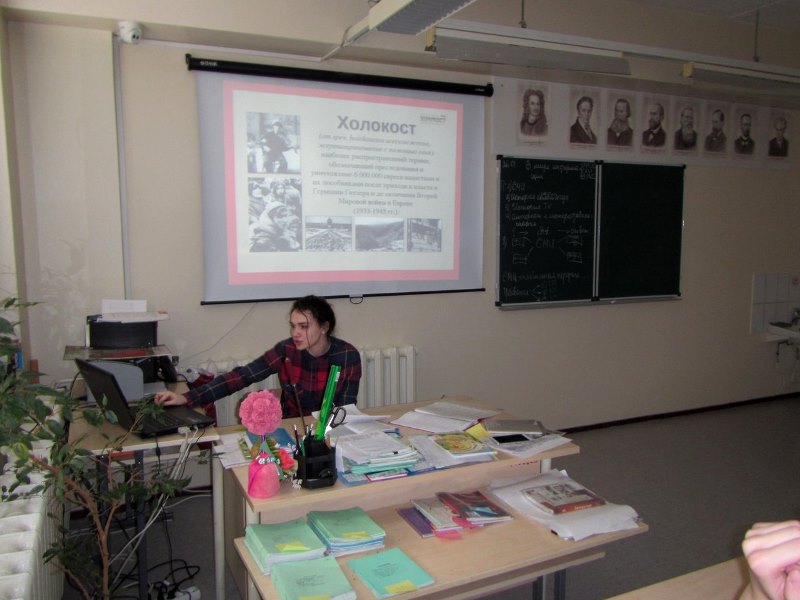 27 января 2018 года в МАОУ СШ№8 на уроках истории учителя Наталья Николаевна Трубарова, Ирина Владимировна Степаненко рассказали обучающимся старших классов о злодеяниях во время Второй Мировой войны, действиях нацистов по уничтожению евреев, цыган, славян, военнопленных мирных граждан.Ученица 11 класса Валерия Бебия подготовила выступление о Холокосте для 8, 10-11 классов. Ребята задавали вопросы, обсуждали увиденное. Пока люди помнят о войне, есть шанс не допустить повторения страшных событий.