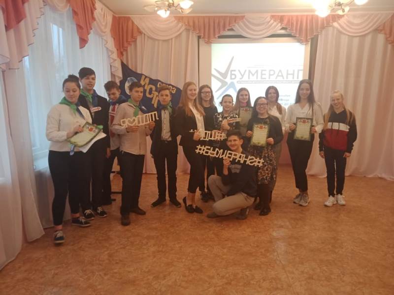 По итогам муниципального этапа областного фестиваля организаторов детского и молодежного общественного движения «Бумеранг» в номинации «Команды школьных активов «Российского движения школьников» наша школа заняла 1 место!