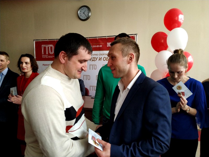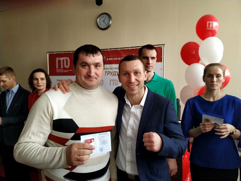 21 марта 2019 года в Региональном центре тестирования ВФСК ГТО на базе ГАУ НО «Центр спортивной подготовки» в рамках дня открытых дверей состоялись мероприятия, приуроченные к 5-летию возрождения комплекса ГТО. В конференц-зале Центра спортивной подготовки прошла торжественная церемония вручения золотых знаков отличия ВФСК ГТО с участием почётных гостей и заслуженных представителей спортивного сообщества региона. Среди награжденных золотыми знаками ГТО- учитель МАОУ СШ№8 Сергей Иванович Соболев и ученик 5-а класса Егор Мосичев.Наши спортсмены получили знаки ГТО из рук Посла ВФСК ГТО в Нижегородской области, мастера спорта международного класса по рукопашному бою и боевому самбо, чемпиона Европы и мира, победителя Кубка мира, чемпиона России, чемпиона Азии Андрея Витальевича Сироткина. Поздравляем и желаем новых побед!
