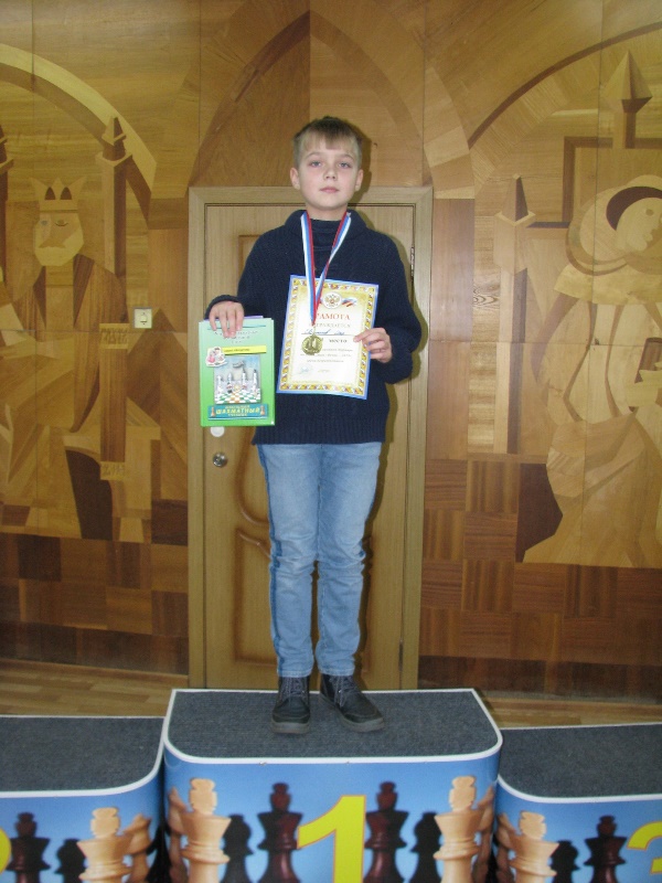 Золотым медалистом стал учащийся 5а класса МАОУ СШ №8 Евстропов Илья, который занял 1 место в турнире среди безразрядников и 3-х юношеский разрядов. Набрав 100% результат 10 очков из 10 партий!Выполнил норму 2-го юношеского разряда!