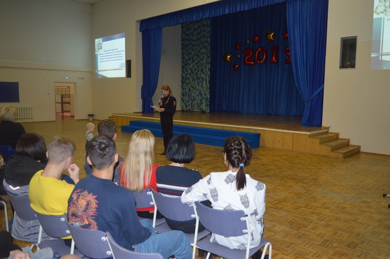 1. «Об уголовной ответственности несовершеннолетних за совершение противоправных действий» - выступила мл. лейтенант полиции, инспектор ПДН ОМВД по Володарскому району Нелипович Екатерина Васильевна