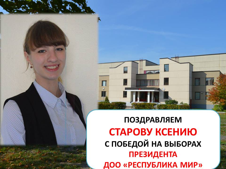 Наибольшее количество голосов было отдано за ученицу 10 класса Старову Ксению! Поздравляем избранного Президента «Республики «МИР»!