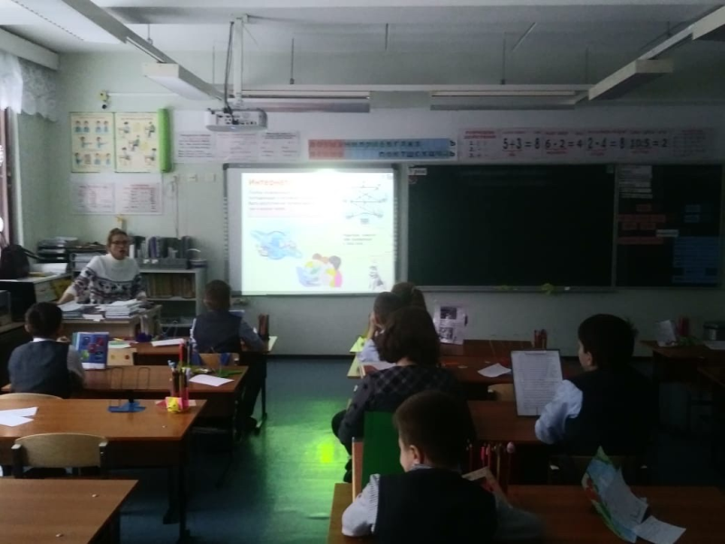 Заведующая сельской библиотекой Ольга Валерьевна Губанова провела в начальной школе информационный час «Темная сторона Интернета». Ребята узнали о правилах работы в Интернете, об опасностях, которые подстерегают неопытного, юного пользователя и об интересных интернет-ресурсах, которые можно и нужно использовать детям в учебе и общении со сверстниками.