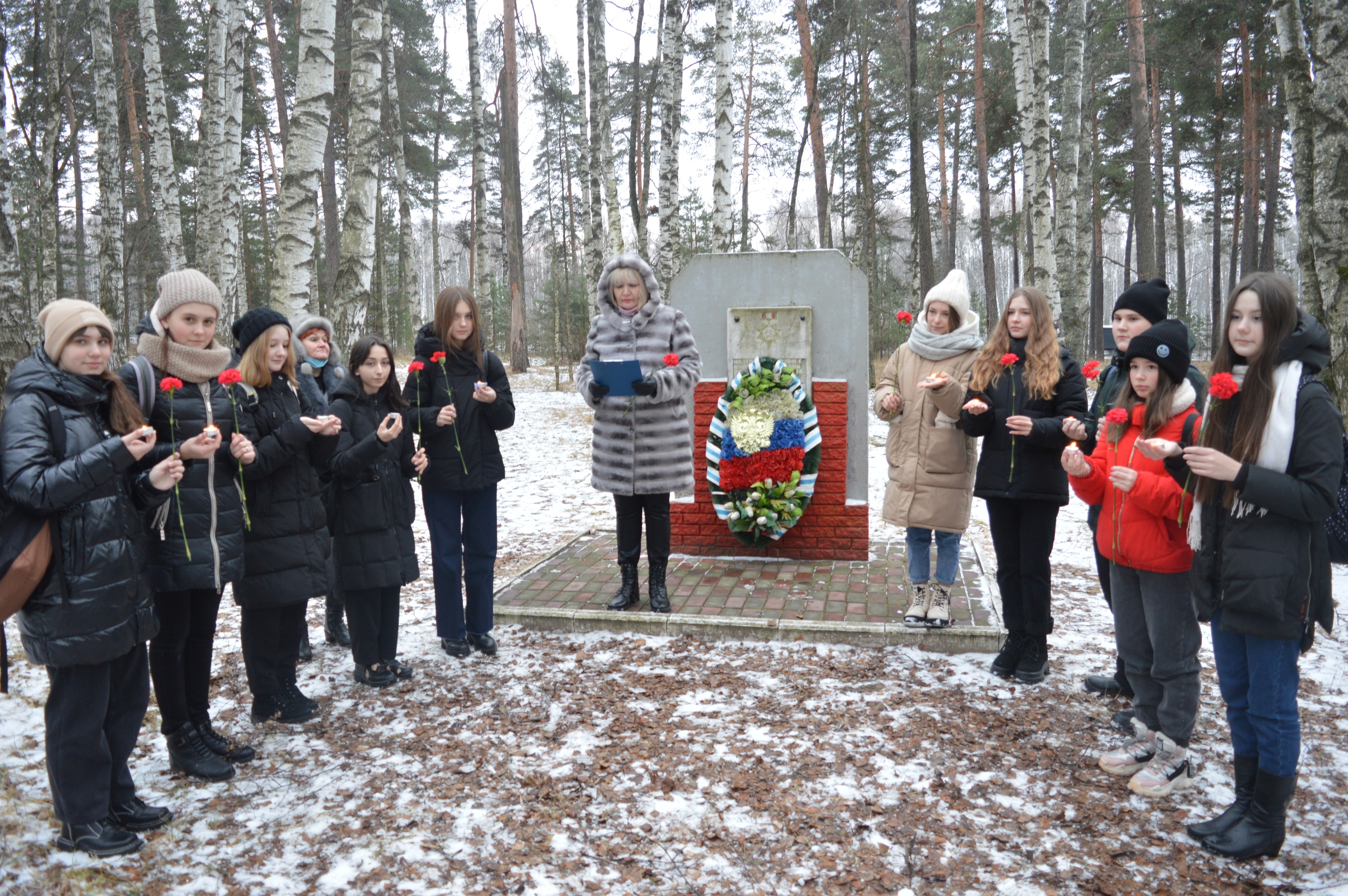 В этот день традиционным мероприятием МАОУ СШ №8 является возложение цветов у Обелиска Латышским стрелкам. Ребята 8 классов после уроков почистили снег у обелиска, возложили цветы, почтили память воинов минутой молчания.