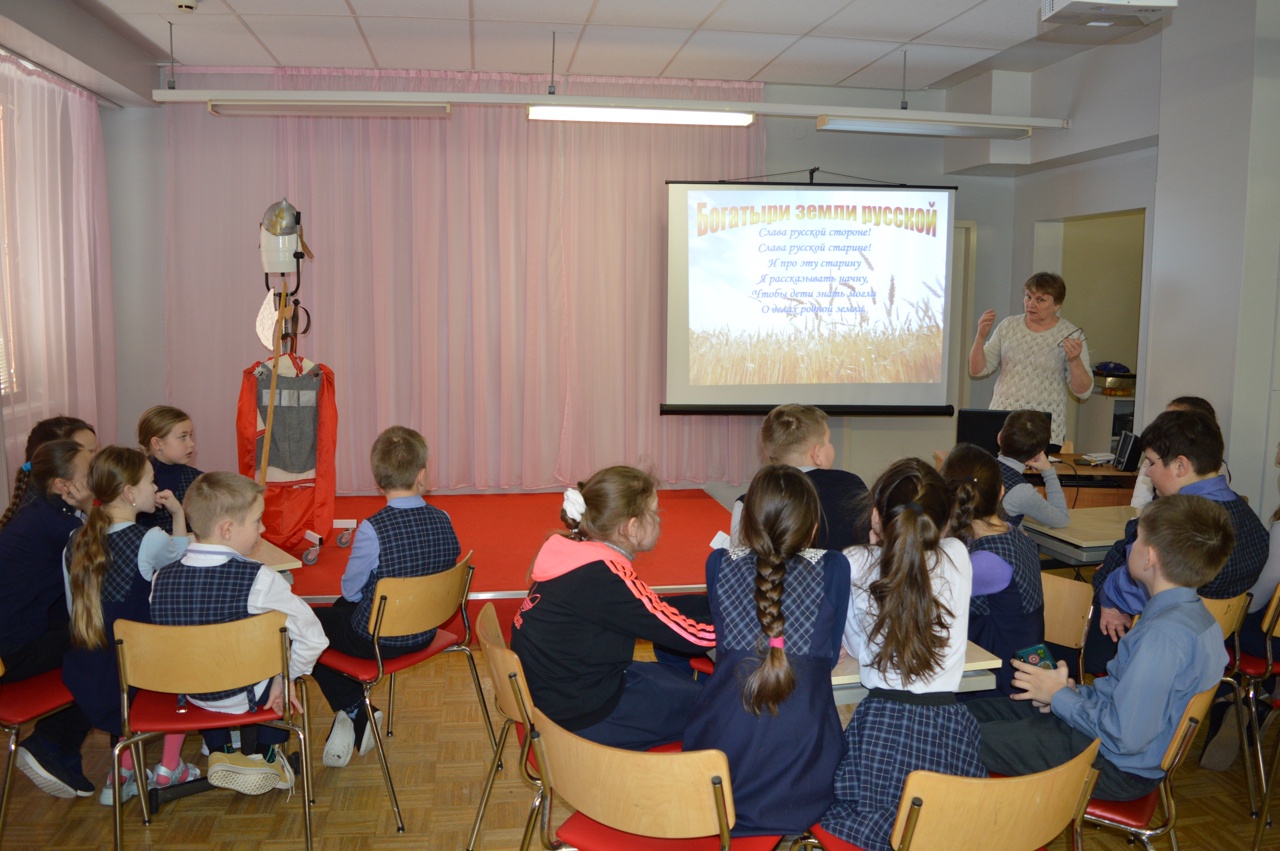 Педагог-библиотекарь Татьяна Владимировна Южакова подготовила интересные задания для учащихся 4-х классов: блиц-опрос, собрать пазл, "демонстрация богатырской силы" и другие.