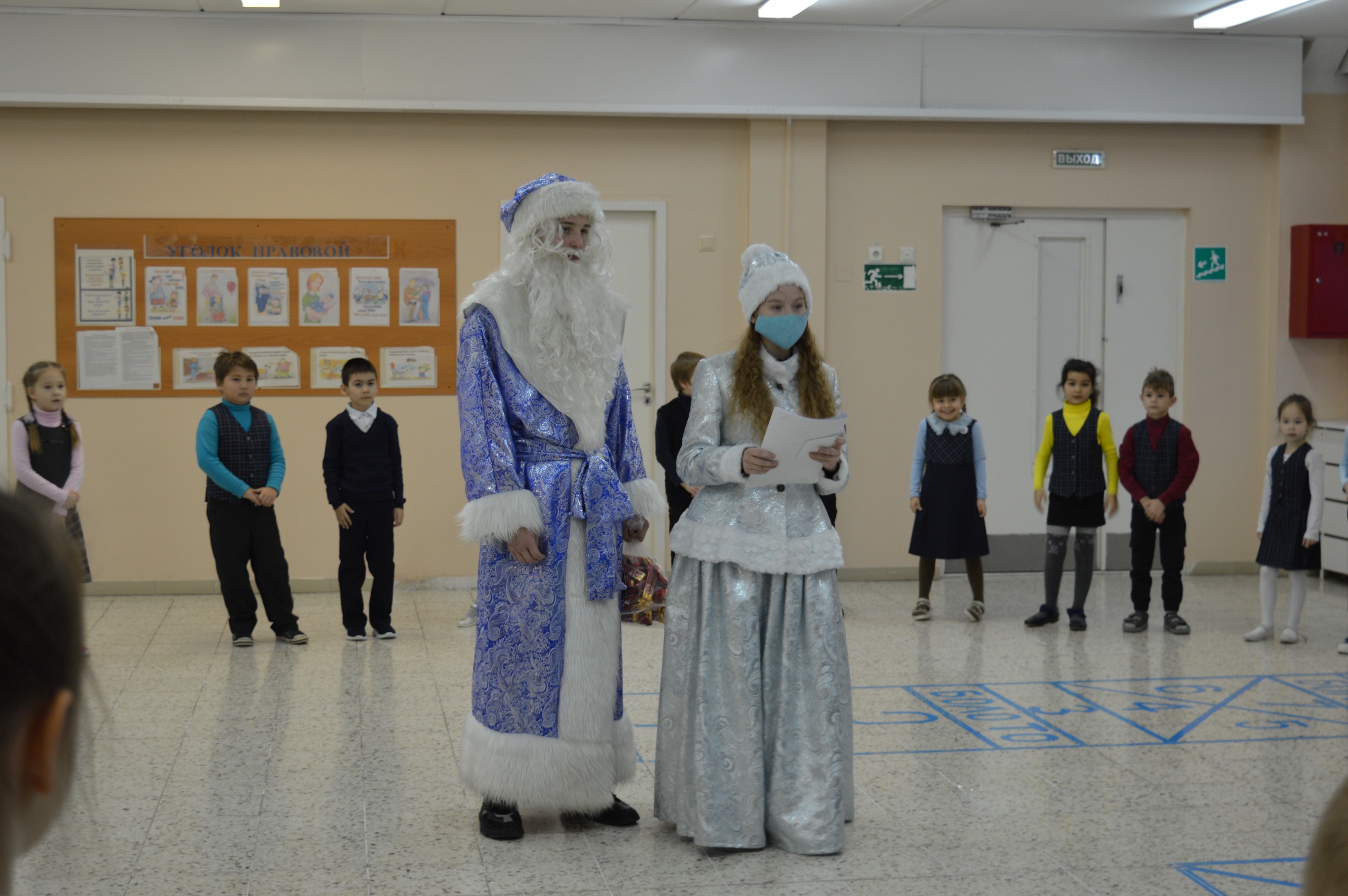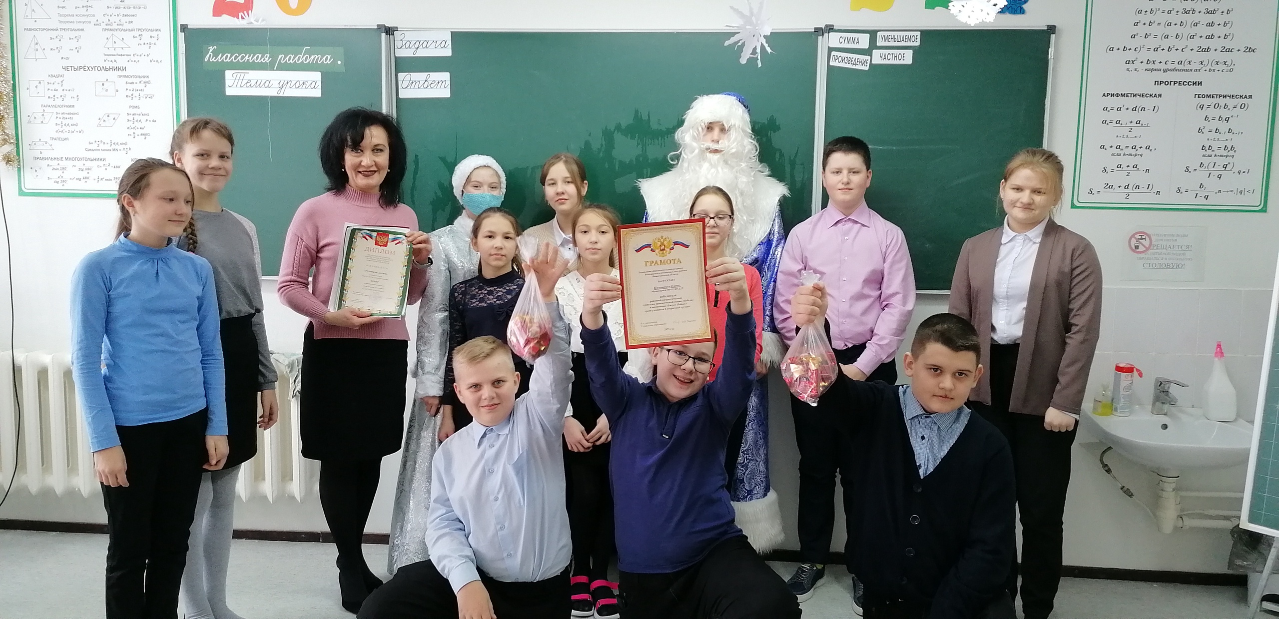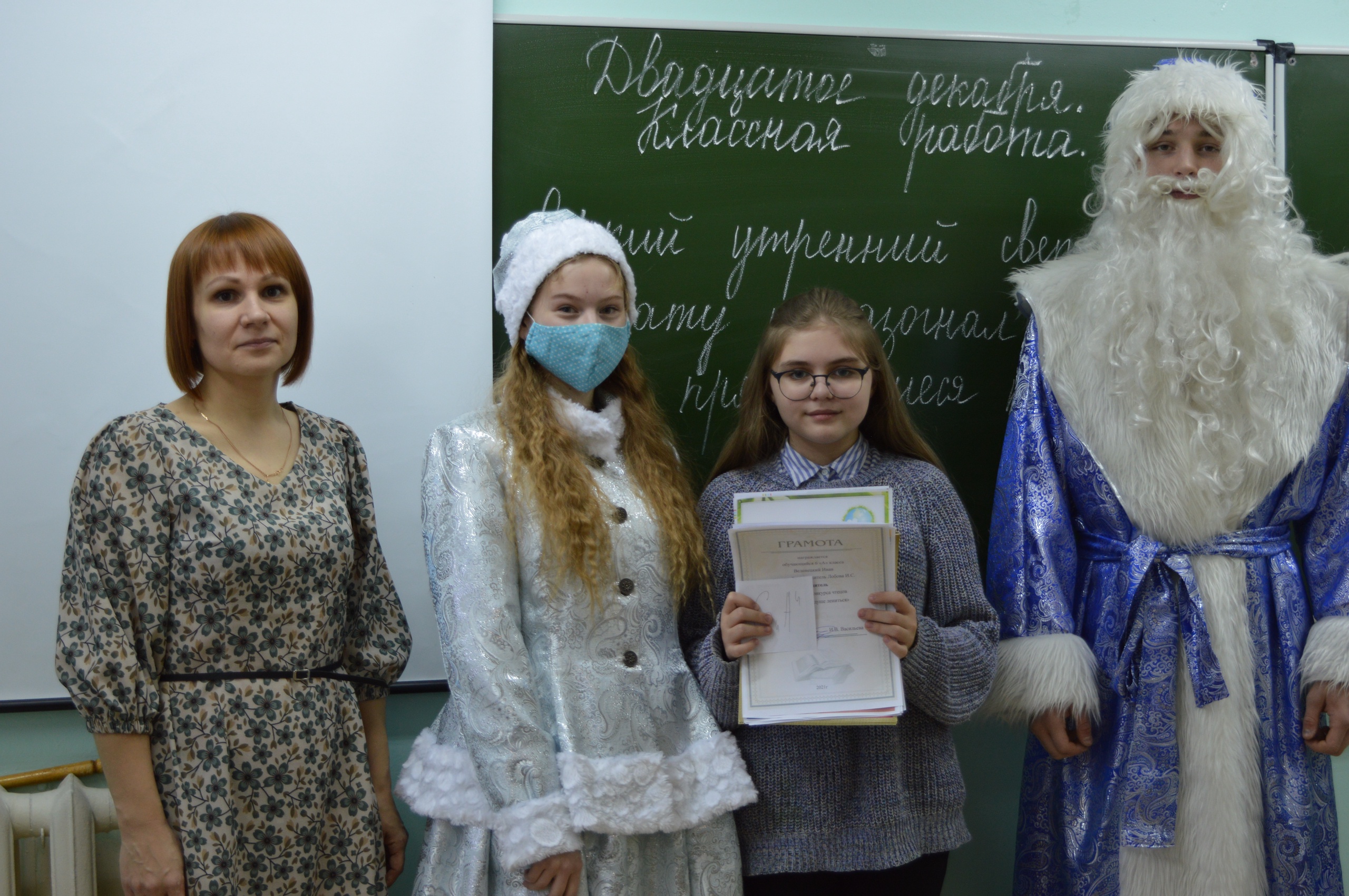 Самым активным классам, кто принимал участие в конкурсах и мероприятиях, Дед Мороз (Гайнов Д.) и Снегурочка (Королёва А.) вручили грамоты.