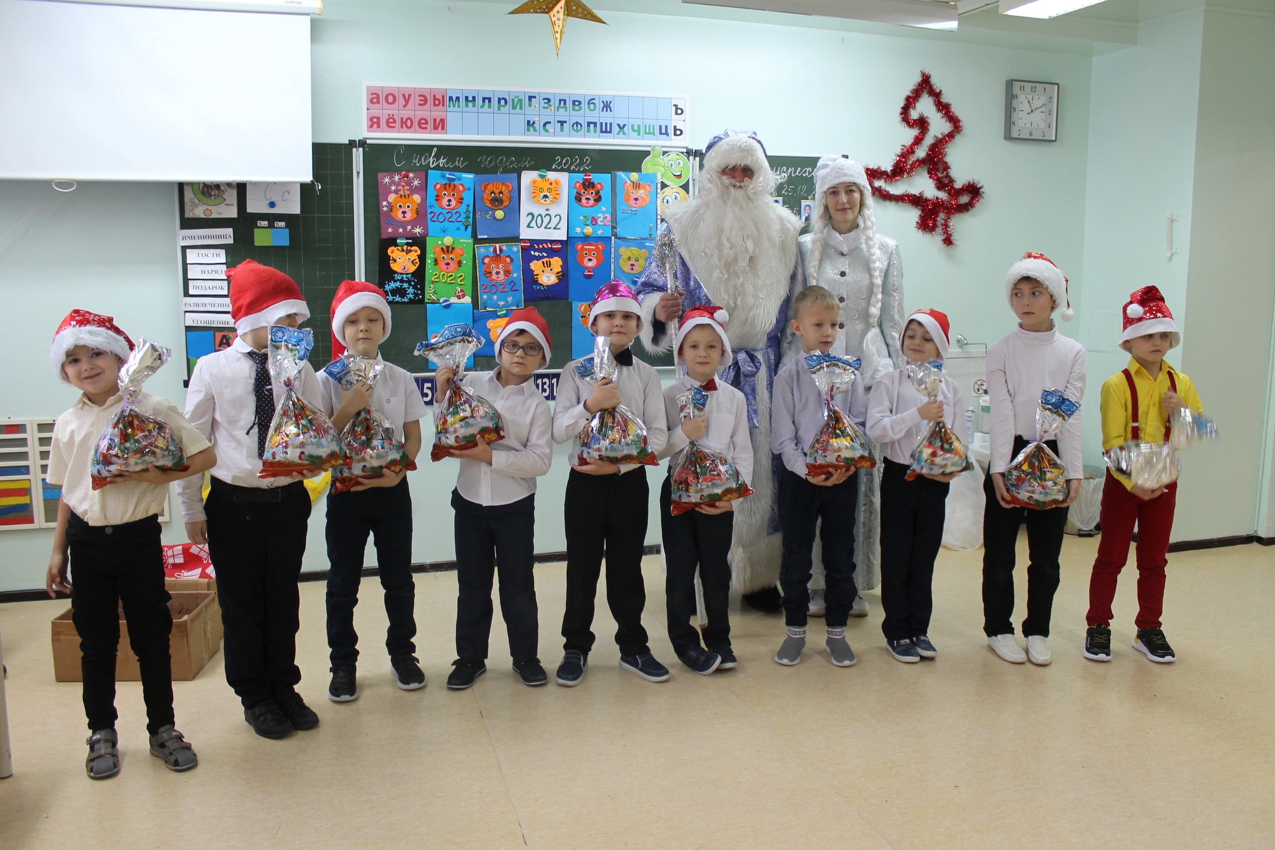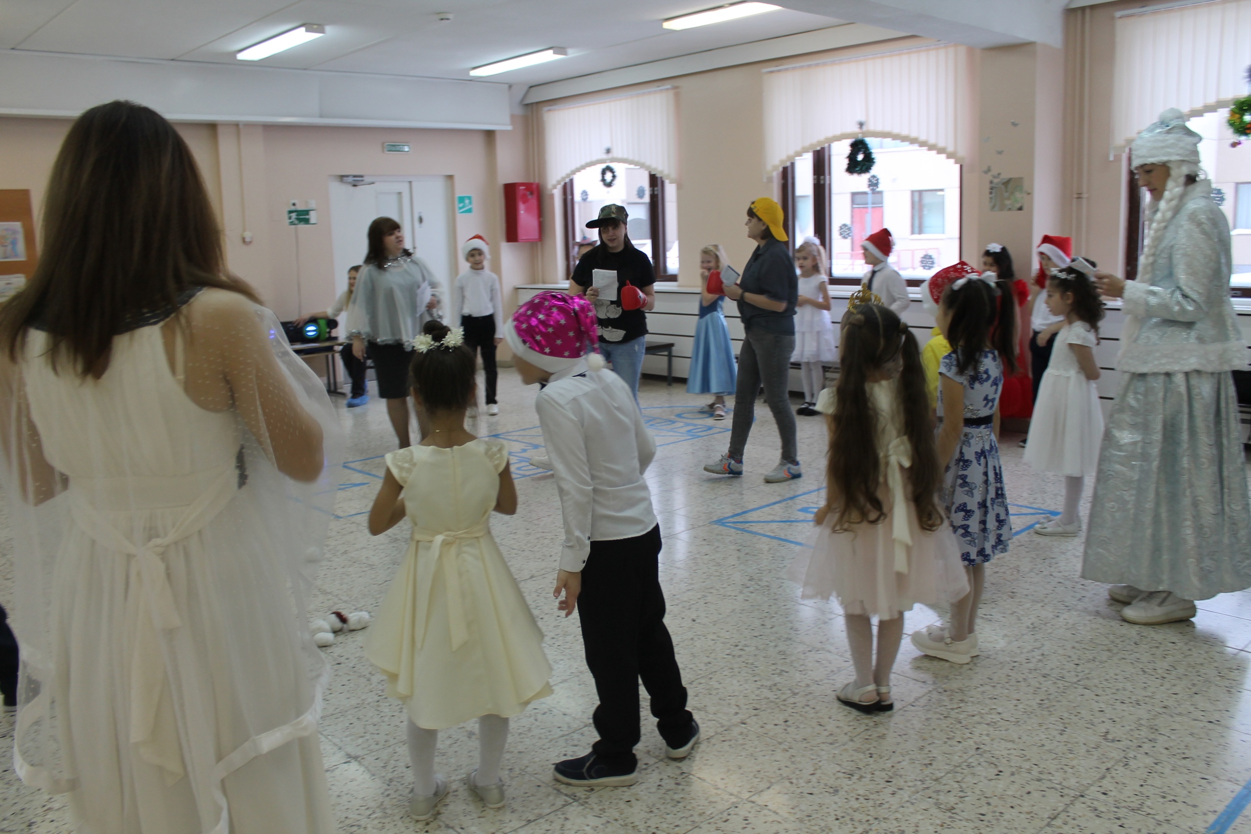 В пути их ждало много препятствий, с которыми они справились: отгадали загадки, отремонтировали рельсы и шпалы, помирили и перевоспитали Драчкина и Забиячкина, дружно пели и танцевали. Все получили за помощь сладкие подарки от Дед Мороза и Снегурочки!