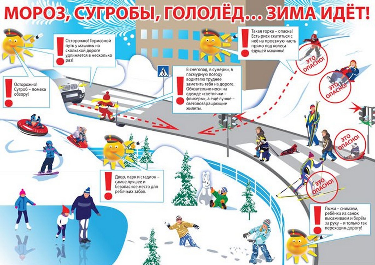 Белый снег уже окутал деревья и засыпал дороги. Пора вспомнить правила поведения на дороге зимой!