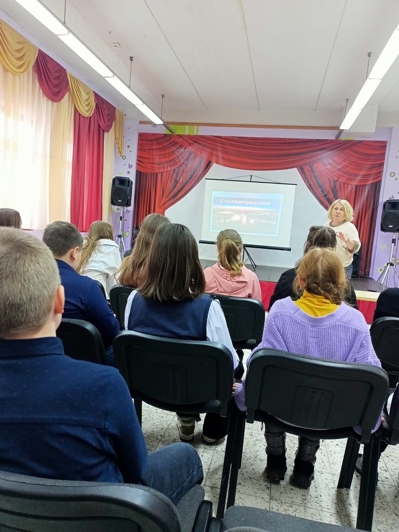 Ребятам рассказали о важных периодах Сталинградской битвы, о её историческом значении, о великих подвигах защитников Сталинграда. Вспомнили подвиги героев Сталинградской битвы: Василия Зайцева, Михаила Паникаху, Александра Попова, Матвея Путилова, Якова Павлова и других, кто ценой своей жизни ковал Победу.