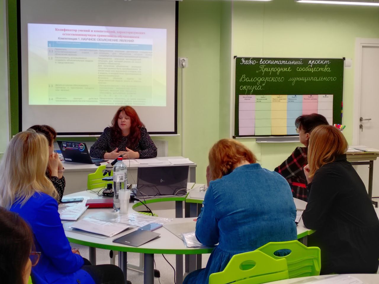 На следующем этапе семинара на базе центра «Точка роста» учитель высшей квалификационной категории МАОУ СШ №8 Полетучая Ольга Ивановна провела практикум «Природные сообщества Володарского муниципального округа». Ей помогали тьюторы-консультанты: учитель высшей квалификационной категории МАОУ СШ №8 Соболева Е. С. , учитель высшей квалификационной категории МАОУ СШ №8 Шуклина М. В., волонтеры: учащиеся 5 А класса - Плюскова Екатерина, Казаков Егор, Рулинна Анна, Лысенко Яна.