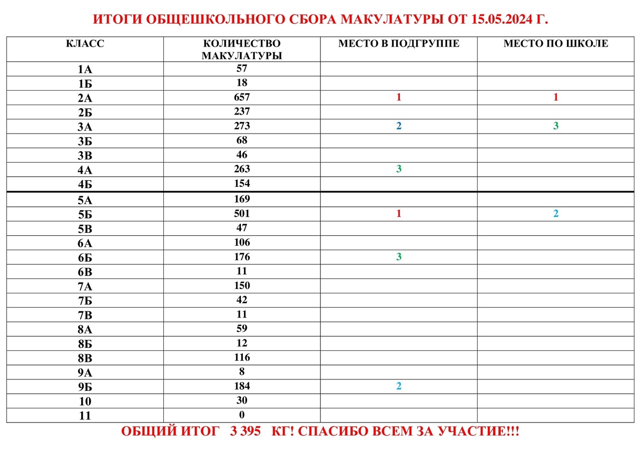 Общий итог составил 3 395 кг!