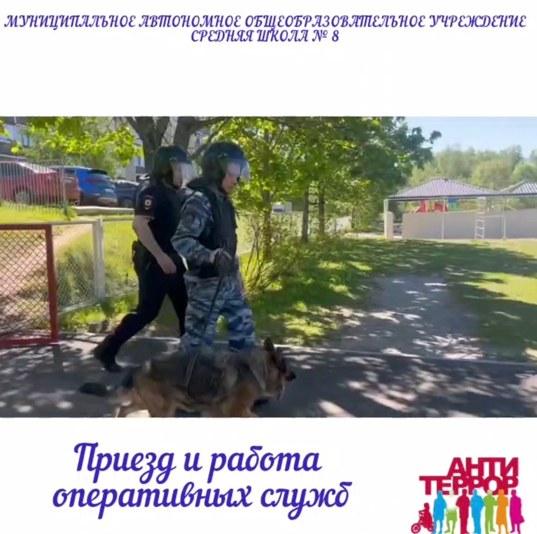 МАОУ СШ № 8 посетили и приняли участие в тренировке: Старший Участковый Уполномоченный полиции п. Мулино капитан полиции Стулёв А. А., Начальник 101-ПСИ 2ПСО г. Володарск старший лейтенант внутренней службы Копкин Е. А., Старший инспектор ОЛРР по г. Дзержинск и Володарскому р-ну Управления Рос гвардии по Нижегородской области капитан полиции Ищенко К. Н., полицейский (кинолог) сержант полиции Климешов и собака по обнаружению взрывчатых веществ по кличке Нерта.