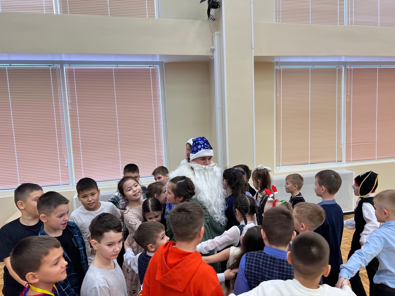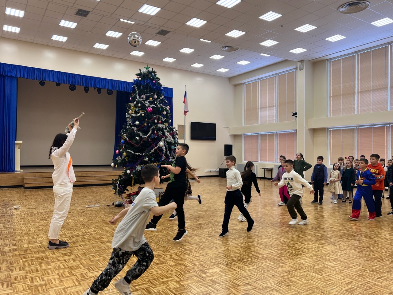 Социальный проект «Добрый Новый год» который реализуется благодаря грантовой поддержки управления культы,спорта и молодёжной политики обучающиеся и волонтерский отряд «Экватор» МАОУ СШ №8 совместно с советником директора по воспитанию Мальцевой Е.К. устроили настоящий праздник с играми и танцами для детей участников СВО
