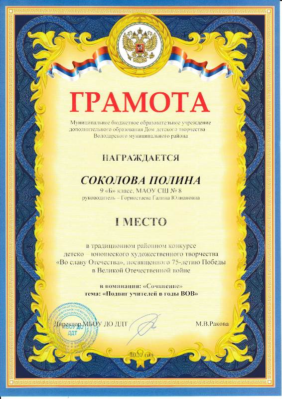 - Грамоты за 2019-2020 учебный год