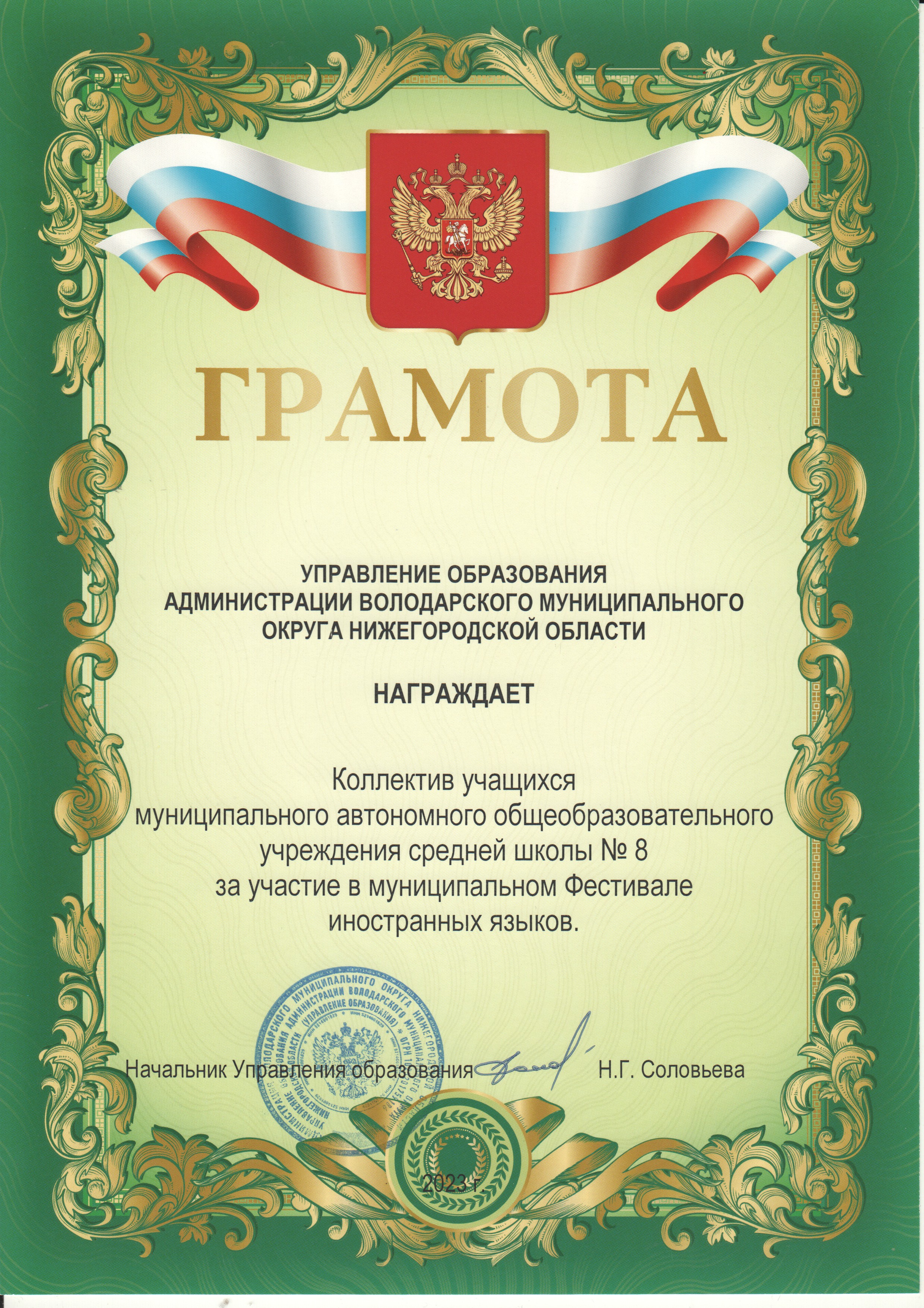 - Грамоты за 2022-2023 учебный год