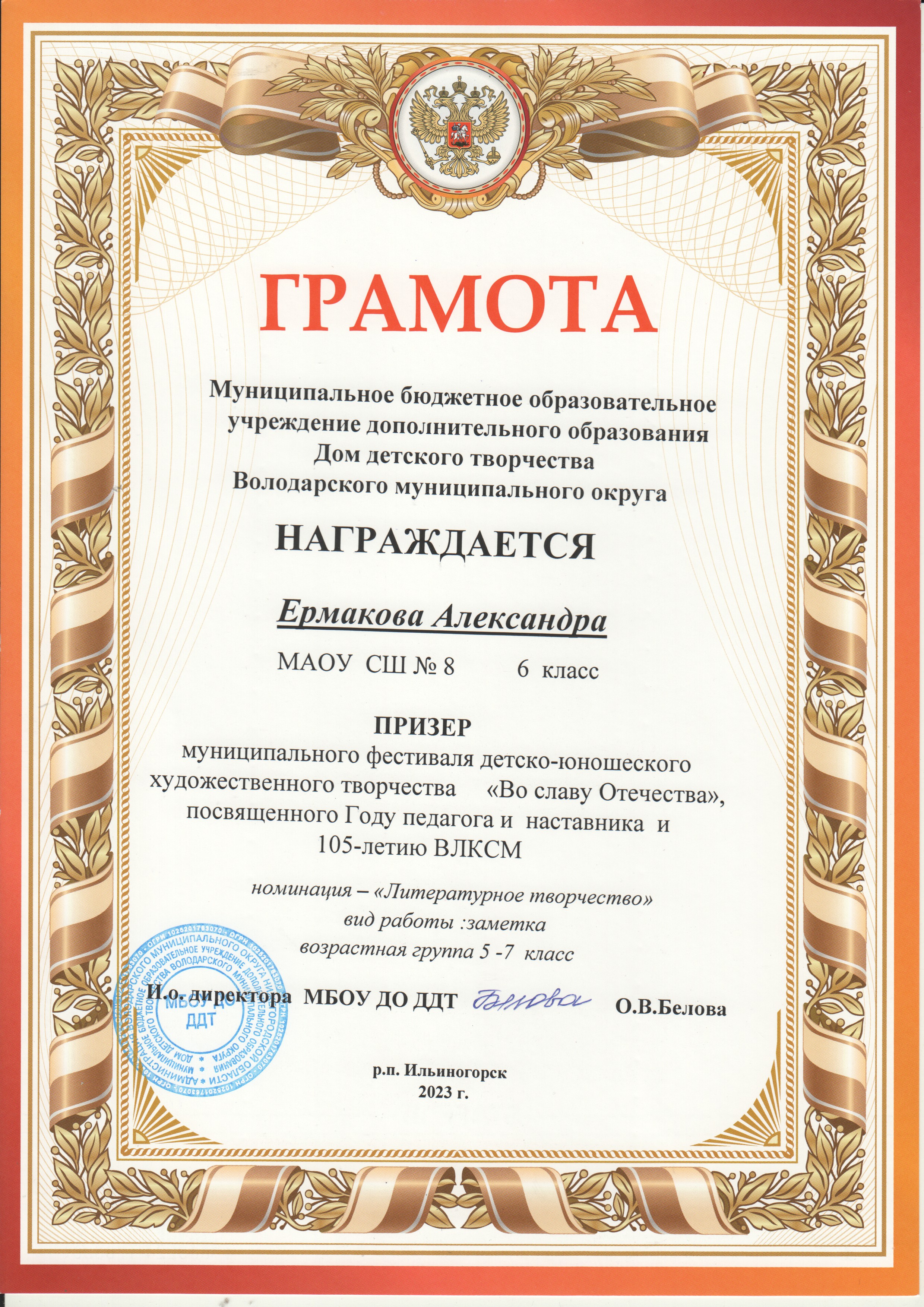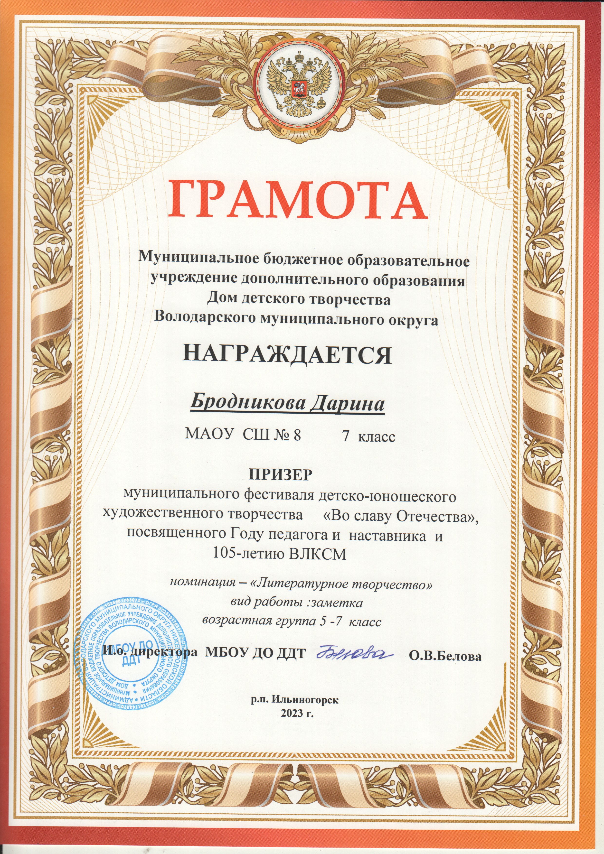 - Грамоты за 2022-2023 учебный год