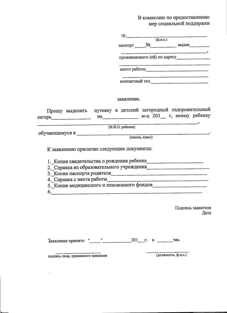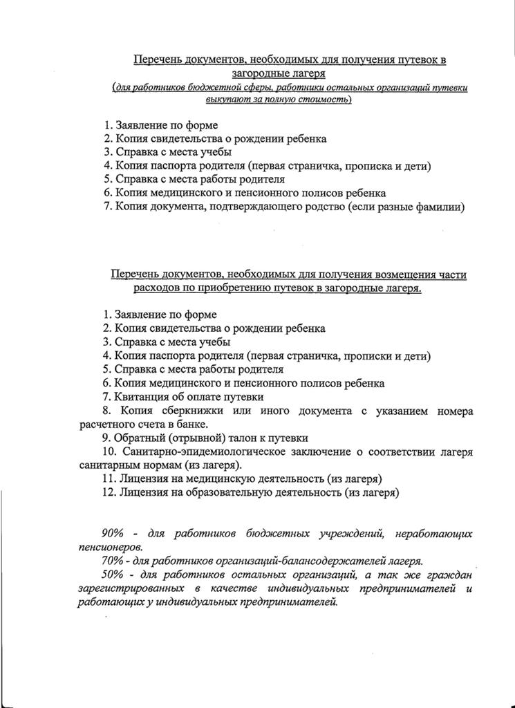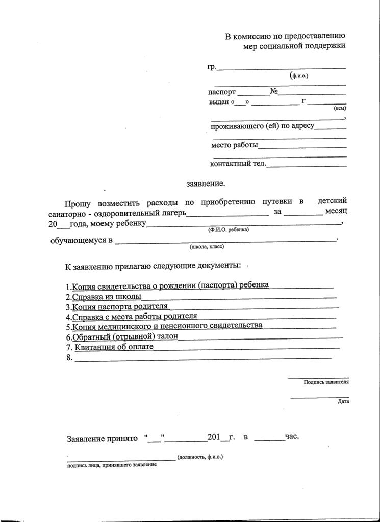 для предоставления меры социальной поддержки в виде возмещения расходов по приобретению путевки в детские загородные оздоровительные центры (лагеря)